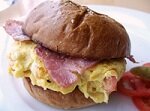 Ham & egg omelette with cheese burger
